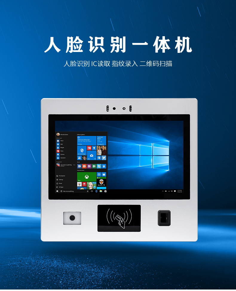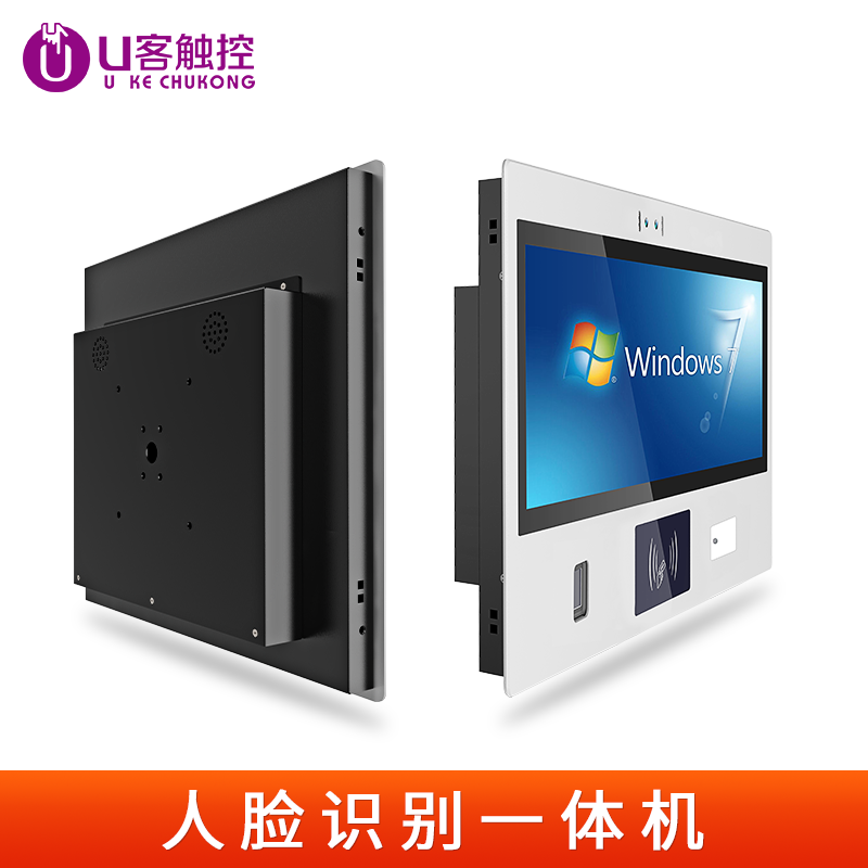 U客触控13.3英寸人脸识别电容屏触摸一体机读二维码刷IC/ID卡指纹识别多功能自助终端机工控一体机