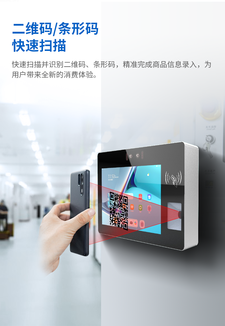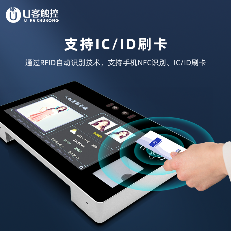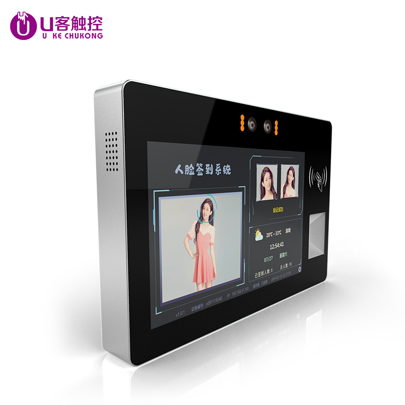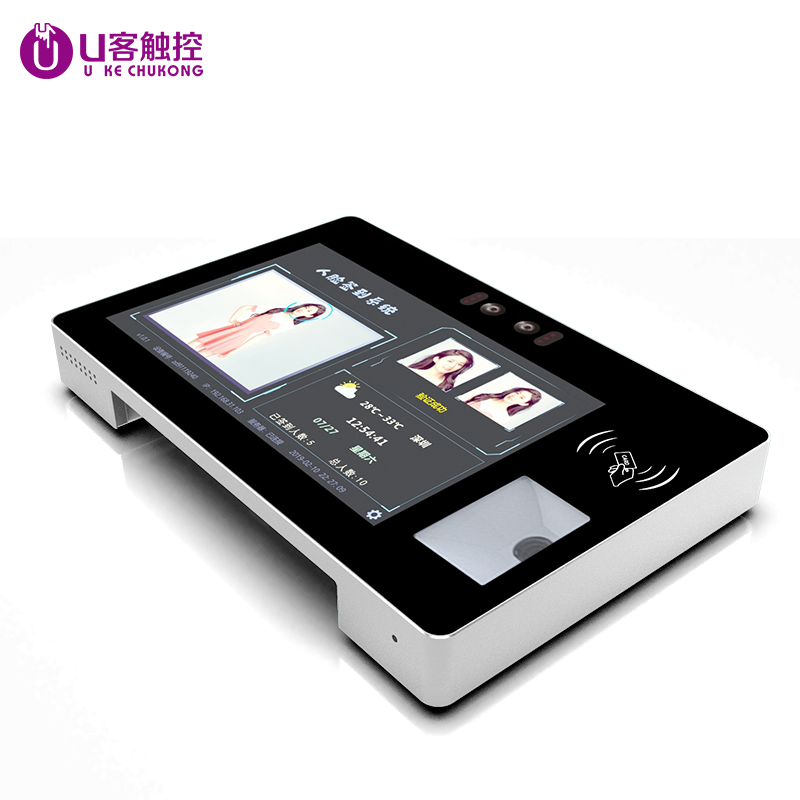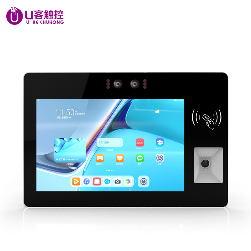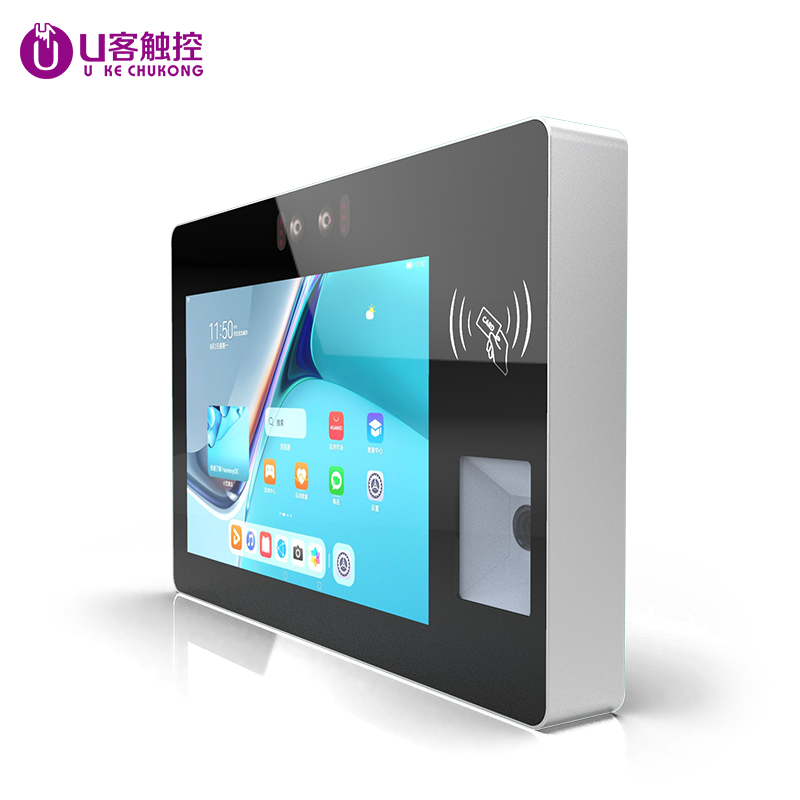 10.1寸壁挂式电容触摸一体机双目摄像头刷IC/ID卡扫二维码自助终端机厂家