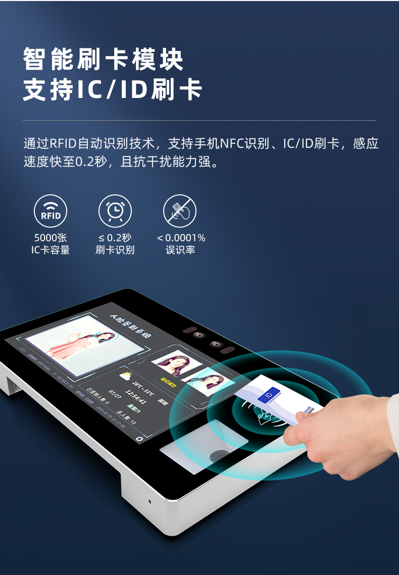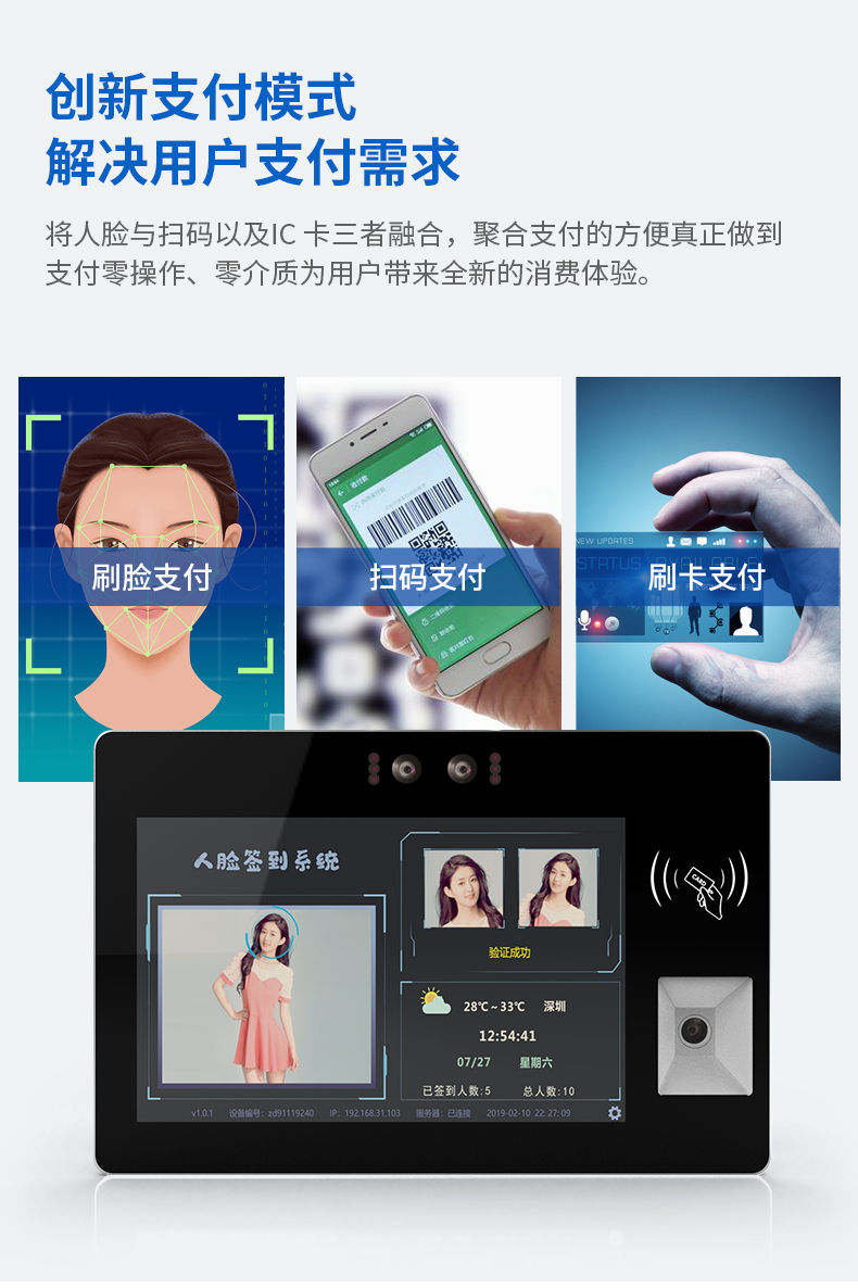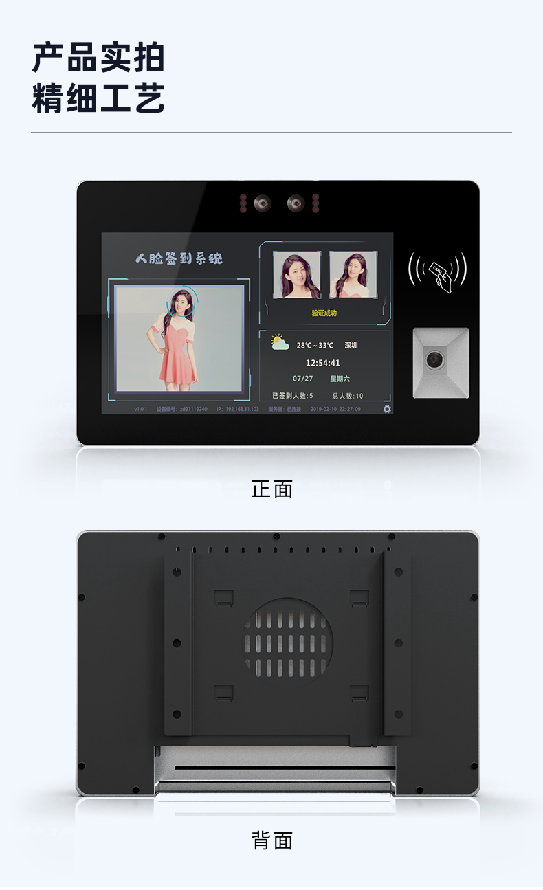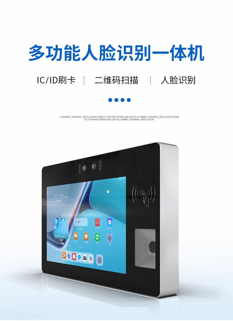 10.1寸壁挂式电容触摸一体机双目摄像头刷IC/ID卡扫二维码自助终端机厂家