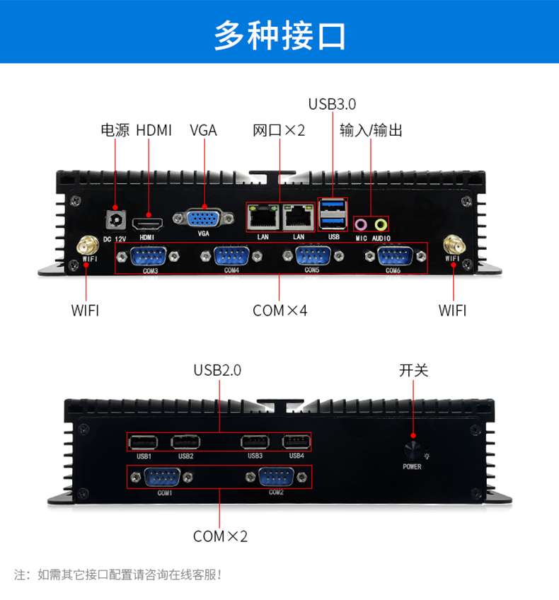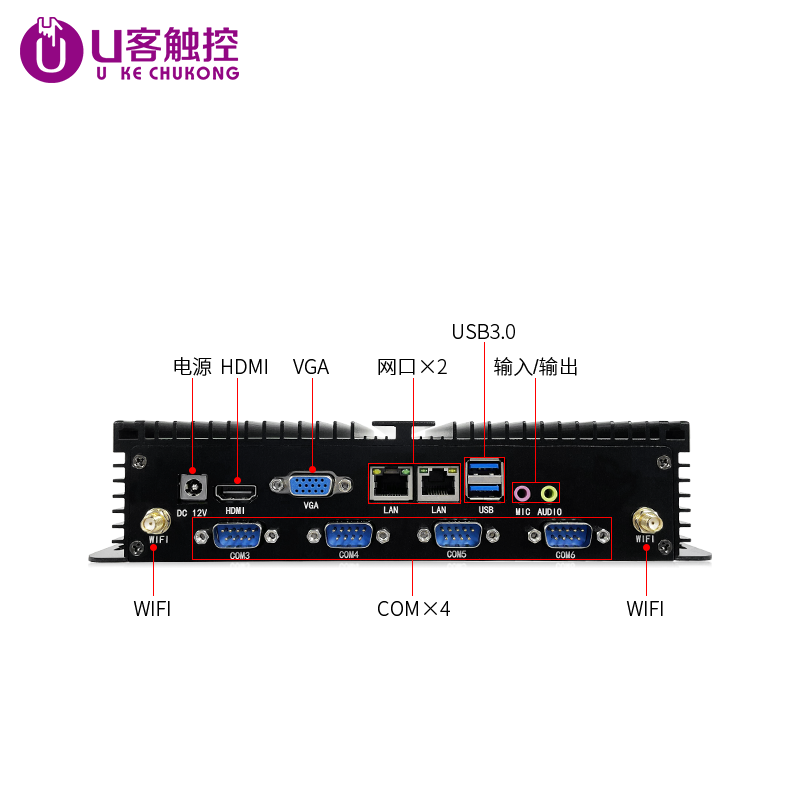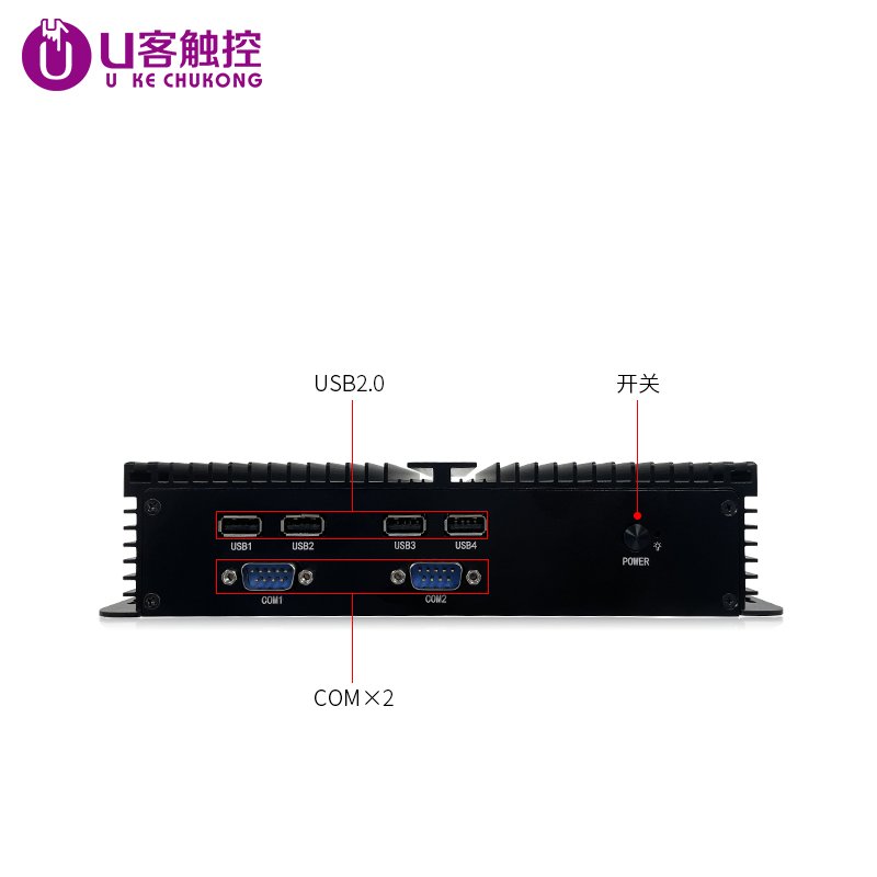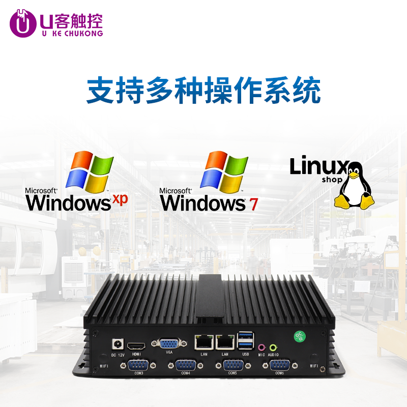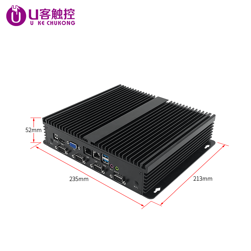 U客触控全封闭工业级迷你电脑主机J1900无风扇低功耗双千兆网口6COM口嵌入式工控电脑主机迷你电脑