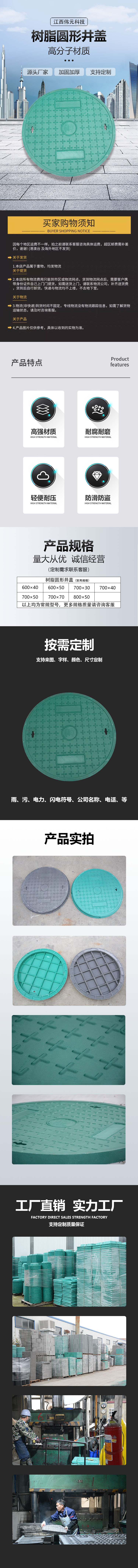 产品名称: 树脂圆井盖 是否进口: 否 执行质量标注: 国标 产地: 江西 性能: 耐腐蚀易安装